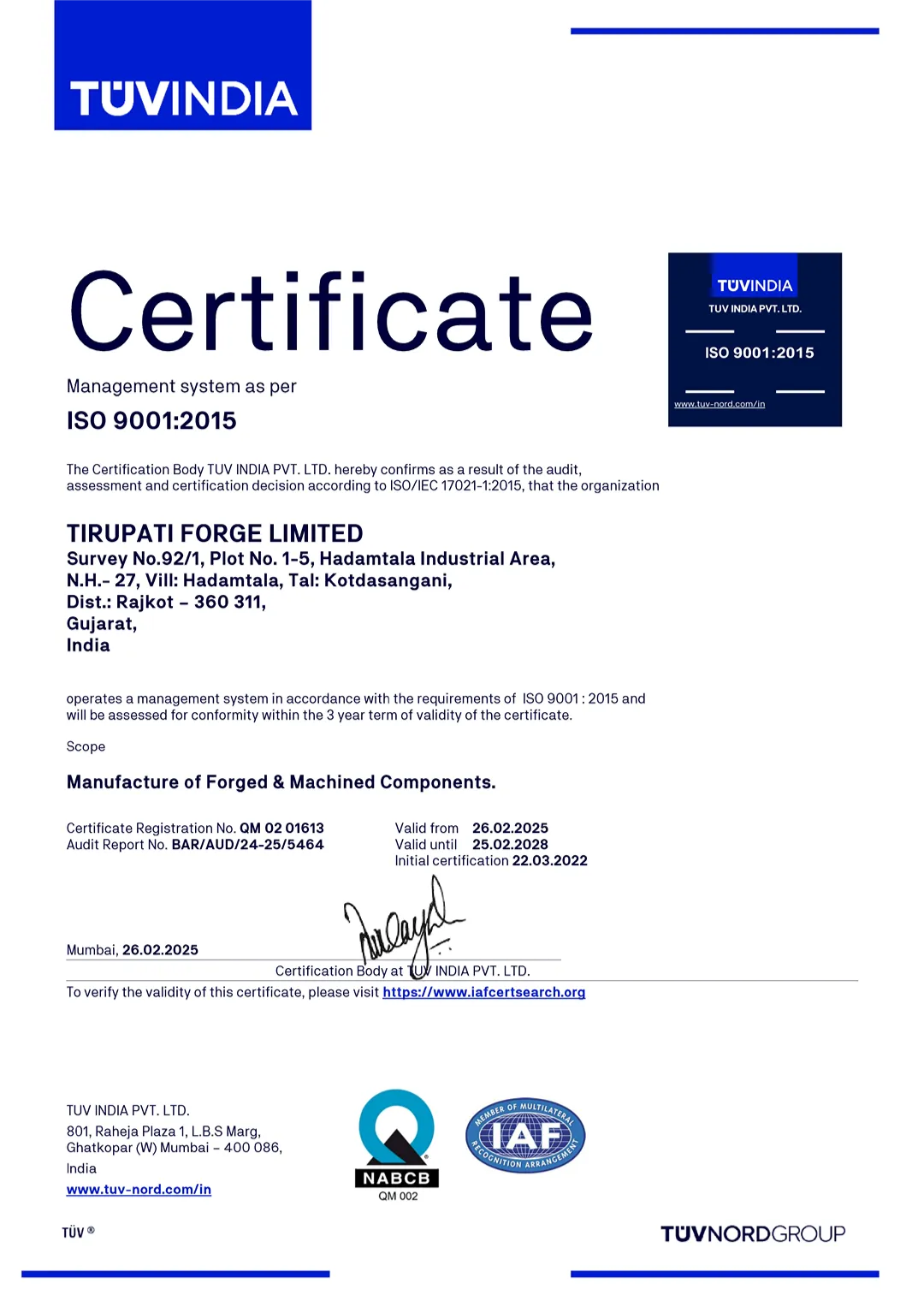 At Tirupati Forge Limited, quality is not an outcome, it is a culture deeply embedded across every process, product, and interaction. Our unwavering commitment to customer satisfaction has positioned us as a trusted forging partner across global markets. For us, quality is not a checkpoint, it's a way of working.
